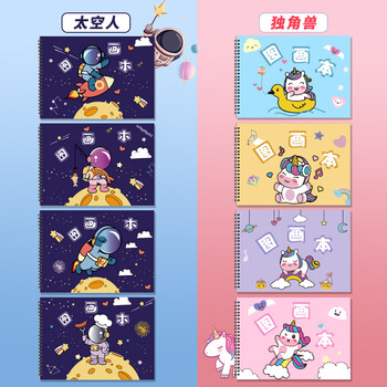 西玛(SIMAA)(SIMAA) 儿童画画本图画本绘画本A4大号美术幼儿园小学生专用100g加厚白纸线圈本绘画套装4本装