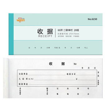 惠朗(huilang)20本装60K二联收据 财务手写收据单 175mm*75mm 无碳复写 20组/40页/本 财务用品6150