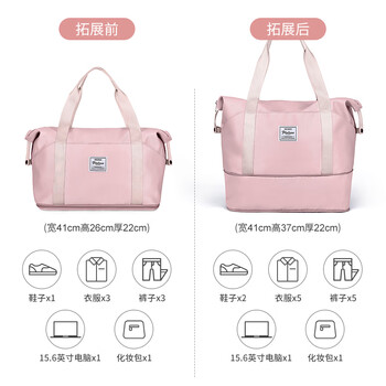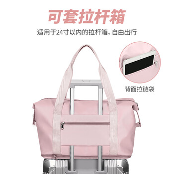 Landcase手提旅行包女大容量轻便行李包袋可扩容收纳包健身包 2104粉色