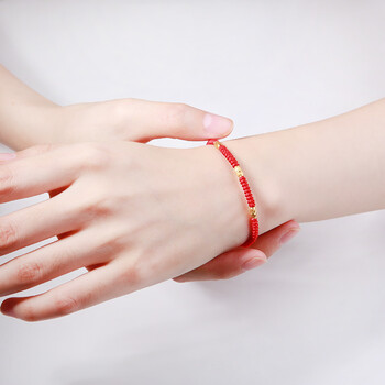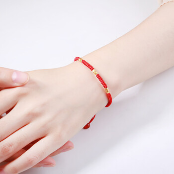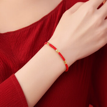 红色年轮黄金转运珠红绳手链三金聚财幸运路路通送女友老婆 总金重约0.33g