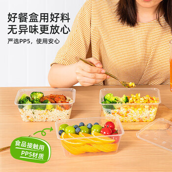 特美居(temeiju)一次性饭盒长方形透明塑料餐盒加厚带盖打包盒餐具300套装1000型