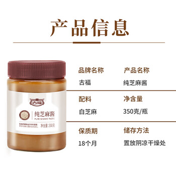 古福 调味酱料 纯芝麻酱 凉拌面热干面酱火锅涮肉蘸料 350g