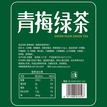 达利园青梅绿茶青梅果汁饮品果味茶饮料500ml*15瓶春游酸甜饮料整箱装