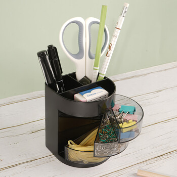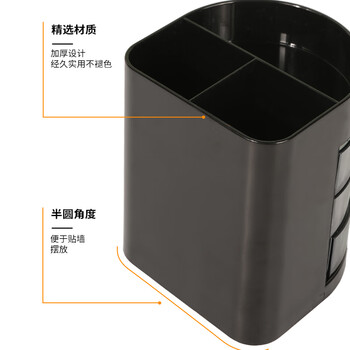 西玛(SIMAA)三层多功能办公笔筒 旋转抽屉 创意桌面收纳盒 办公用品 黑色 单个装 8639