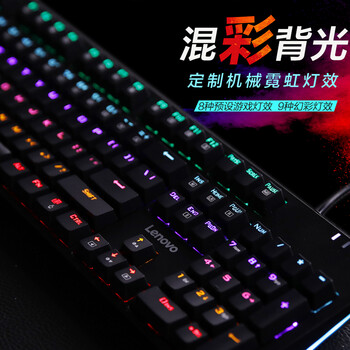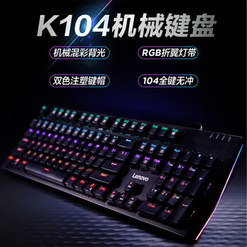 联想(Lenovo) K104有线机械青轴键盘 RGB光效 适用拯救者R9000P/Y7000 游戏电竞办公104键 吃鸡键盘 黑色青轴