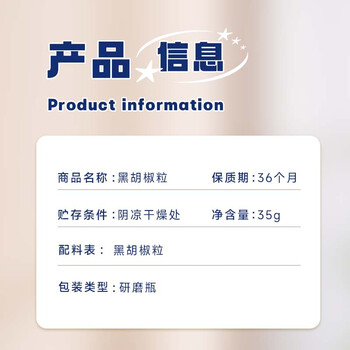 吉得利 黑胡椒颗粒35g研磨瓶装x1