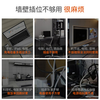 吉屋轻智国标安全插座转换器/ 一转多插座/转换插头/插座扩展/一转三插座分控 家用厨房电源插头