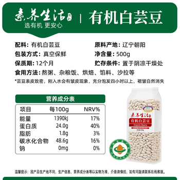 素养生活有机白芸豆1斤 小白芸豆 白腰豆 菜豆 饭豆 小粒 五谷杂粮 粗粮