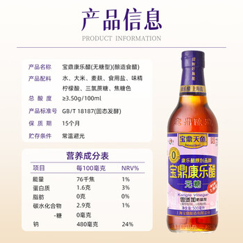 宝鼎天鱼上海宝鼎无糖康乐醋500ml纯粮酿造蘸醋蟹醋饺子醋米醋甜醋凉拌醋