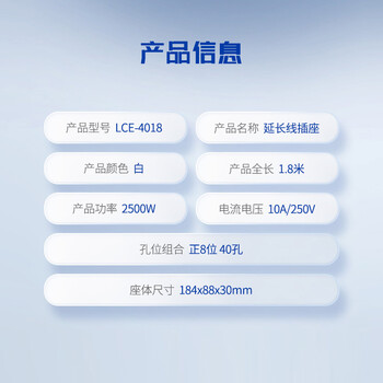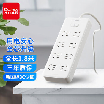 齐心(Comix) 新国标插座/插线板/插排/排插/接线板/拖线板 8位40孔总控 全长1.8米 LCE-4018