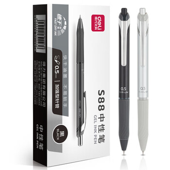 得力S88办公中性笔0.5mm加强型针管(速干)(黑)(支)*12
