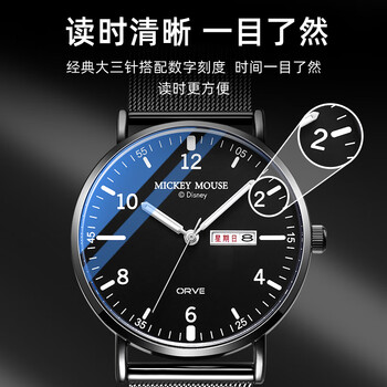 迪士尼(Disney)学生手表男简约防水双日历石英表初高中生考试手表开学MK-12053B3