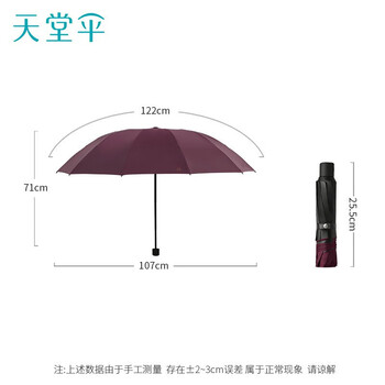 天堂 防晒晴雨伞三折 三折伞防紫外线商务伞升级黑钢伞 红色