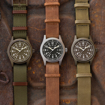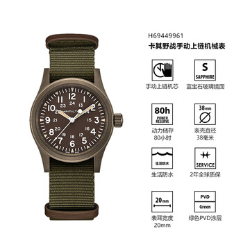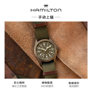 汉米尔顿(Hamilton)卡其野战手动上链机械表38大地色表盘 瑞士手表军表男士机械表
