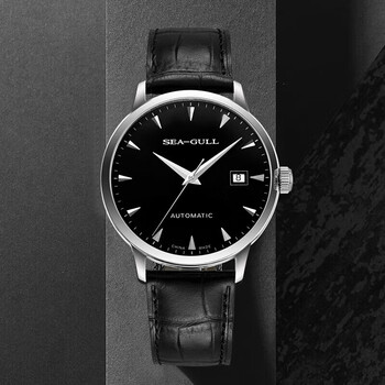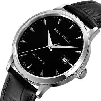 海鸥(SEAGULL)手表男士自动机械表 日历皮带男士手表 生日礼物6613黑盘条钉