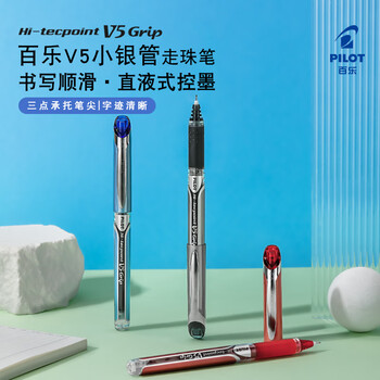 百乐(PILOT)针管式中性笔刷题考试专用水笔签字笔文具办公用笔商务笔V5小银管BXGPN-V5-B 黑色 0.5mm单支装