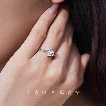 喜钻生日礼物铂金天使之吻活口可调节钻戒结婚求婚钻石戒指