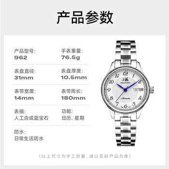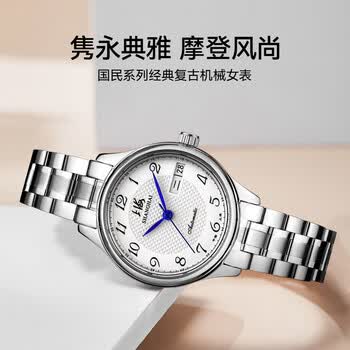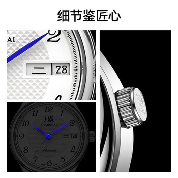上海(SHANGHAI)手表女款 国民系列 女士自动机械腕表 962 白盘双历女表
