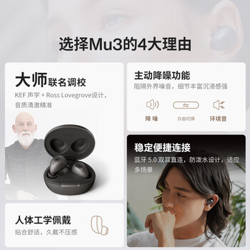 KEF Mu3 Wireless 真无线蓝牙耳机 主动降噪 IPX5入耳式跑步运动音乐HiFi耳机 礼物 炭灰色
