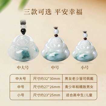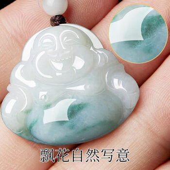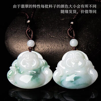 曼丽翠翡翠糯种飘花佛公吊坠笑佛玉坠送女友送妈妈礼物附证书