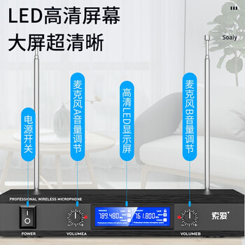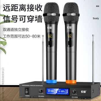 索爱(soaiy)SA-WK2麦克风家庭KTV唱歌K歌音响会议主持演讲金属机身一拖二无线话筒