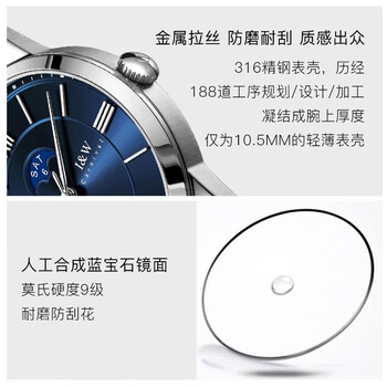 爱沃驰全自动机械男士手表品牌名表商务月相款防水超薄生日礼物新年礼物