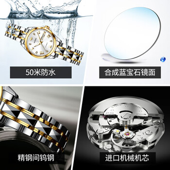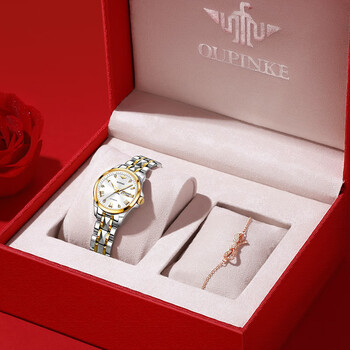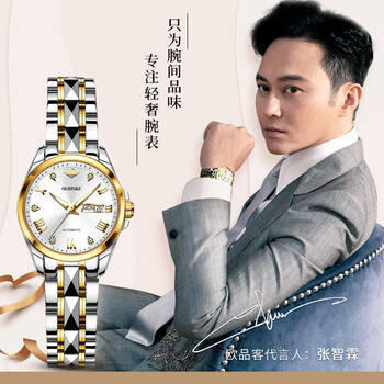 欧品客手表女机械表全自动夜光防水手表女士简约商务日历生日礼物送老婆