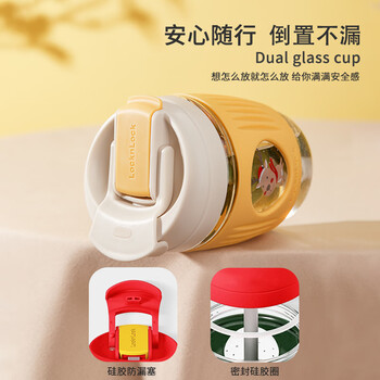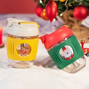乐扣乐扣玻璃杯水杯吸管杯咖啡杯便携牛奶杯子饮料杯圣诞黄色麋鹿350ml