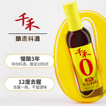 千禾3年料酒 12度 500mL 【0添加】去腥解膻炖肉家用调味品配料干净
