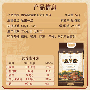 孟乍隆 清莱茉莉香米5KG ×1袋