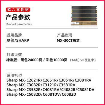 玖六零适用夏普MX-C2622R粉盒C6081DV/C3081/3581/4081RV墨盒2621/3082/6082复印机粉盒MX-30CT打印机硒鼓黑色