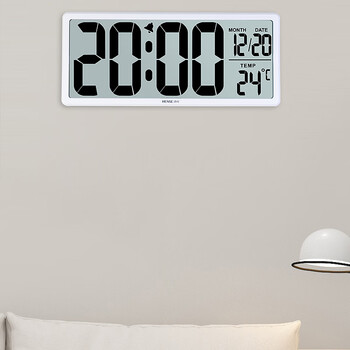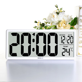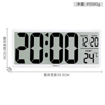汉时(Hense)LCD大屏电子时钟挂钟多功能客厅挂墙表桌面台钟闹钟HA88白色英文