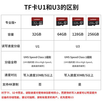 联想(Lenovo)64GB TF(MicroSD)内存卡 U3 V30 A1 手机平板监控行车记录仪专用卡