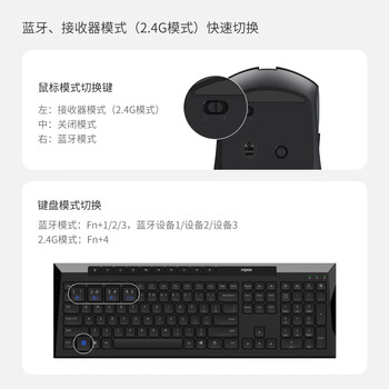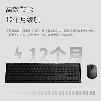 雷柏(Rapoo)8200G 无线蓝牙多模键鼠套装 121键全尺寸16个多媒体按键 轻音笔记本电脑办公键盘鼠标套装 黑色