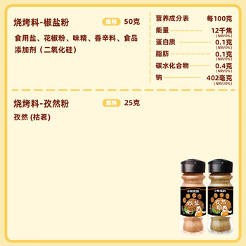 小熊驾到 椒盐粉50g+孜然粉25g厨房烧烤调料火锅调料香料撒料羊肉串调味品