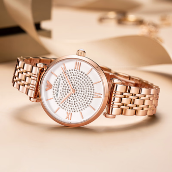 EMPORIO ARMANI阿玛尼女士手表 满天星时尚镶钻石英腕表生日礼物送女友AR11244