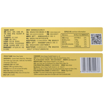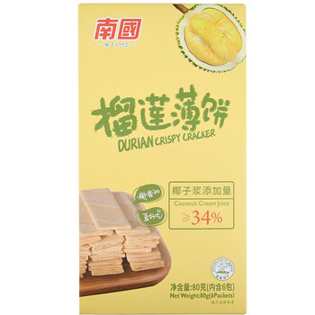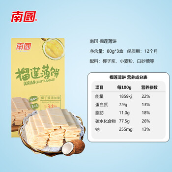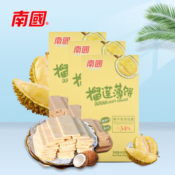 南国 椰香薄饼榴莲味80g*3盒 薄脆椰子饼干海南特产休闲零食独立包装