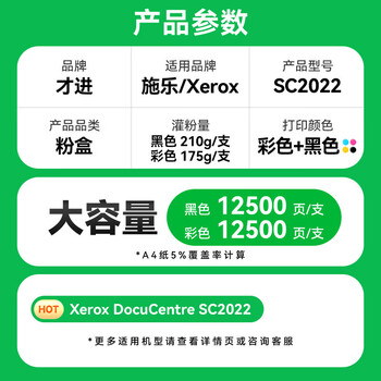 才进适用富士施乐SC2022粉盒黑彩色2022硒鼓SC2022CPS墨盒Xerox DocuCentre SC2022DA复印机墨粉SC2022NW碳粉