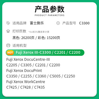 才进适用富士施乐C3300粉盒彩色7425 7435三代DocuCentre-III C2200墨粉C2205墨盒C3305 7428复印机碳粉C2201