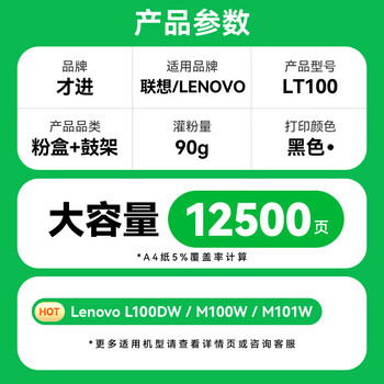 才进适用联想领像m101dw粉盒m100w m100 m102w硒鼓LT100打印机碳粉L100w m100D墨盒L100d L100dw m101d/w墨粉