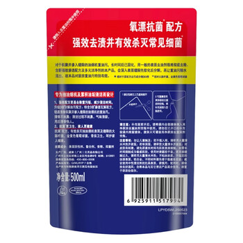 亮净厨房去重油剂氧漂抗菌500ml袋补充装 厨房油污清洁剂油烟机清洗剂