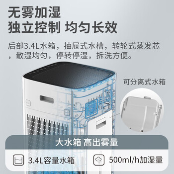 亚都(YADU)空气净化器除甲醛雾霾 无雾加湿净化器一体 VOC数值显示 办公室卧室家用 KJ800G-P8H55