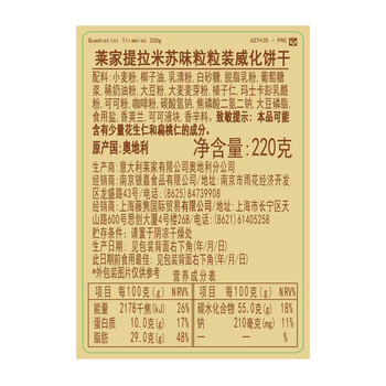 莱家loacker提拉米苏味威化饼干220g进口休闲宿舍耐吃零食