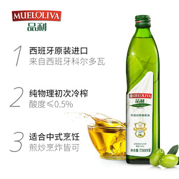 品利(MUELOLIVA)【保真橄榄油】特级初榨橄榄油750ml食用油西班牙进口辅食油送礼