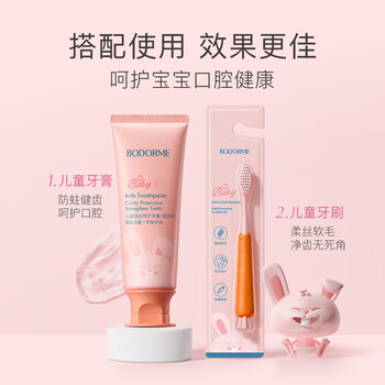 贝德美(bodcrme)儿童牙膏牙刷套装(益生菌防蛀健齿呵护牙膏 低氟安全不刺激)