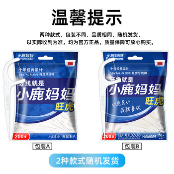 小鹿妈妈旺虎牙线棒200支/袋*3袋,共600支送随身盒