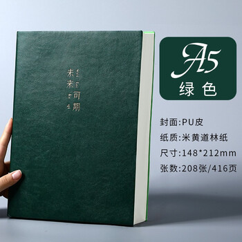 嘉然恒 商务简约笔记本本子A5超加厚416页记事本文具学生复习日记本办公日志会议记录本可定制 墨绿色