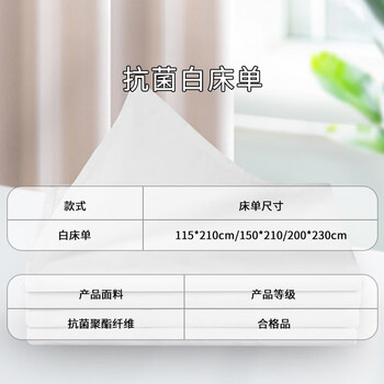 艾薇 白床单抗菌床单白色军训学生宿舍单人床单单件 白色115*210cm