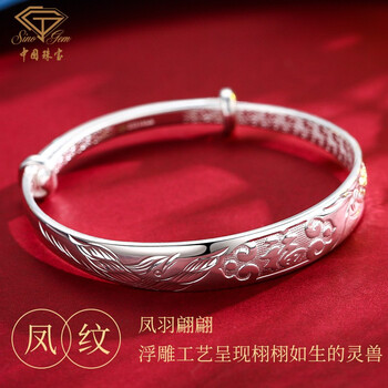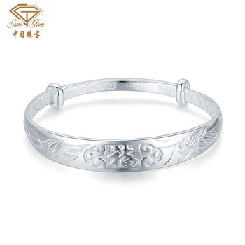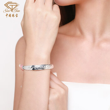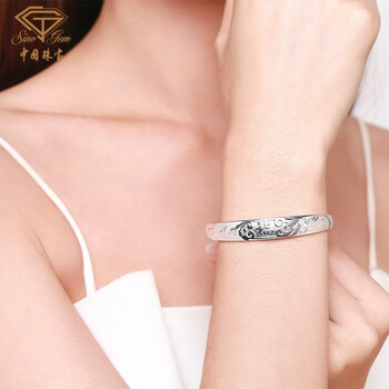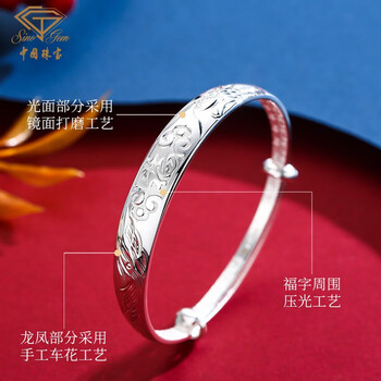 中国珠宝生日礼物送女友 足银999银手镯女款中国风龙凤约30克