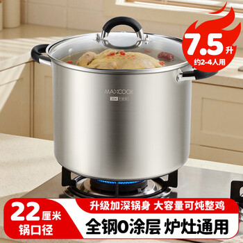 美厨(maxcook)汤锅304不锈钢 复底高汤锅22cm 燃气炉电磁炉通用 MCT3387